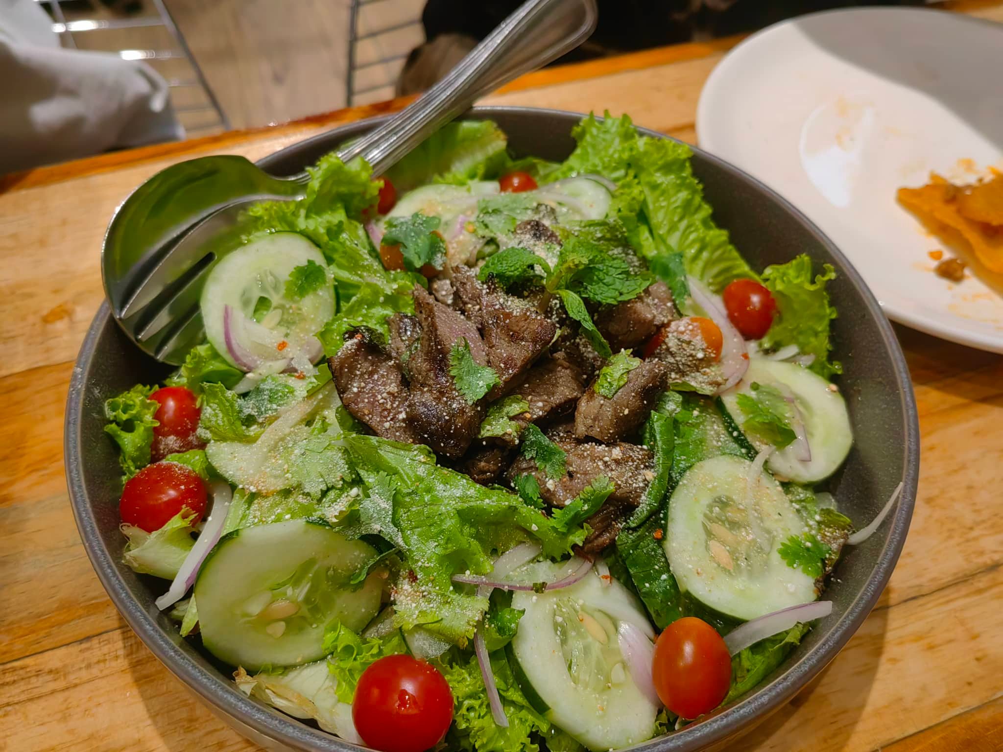 A hack we discovered. Order this and you don’t need to order steak, lol. The slices of steak are enough to fill you. I love the tanginess of the dressing and the doneness of the steak.