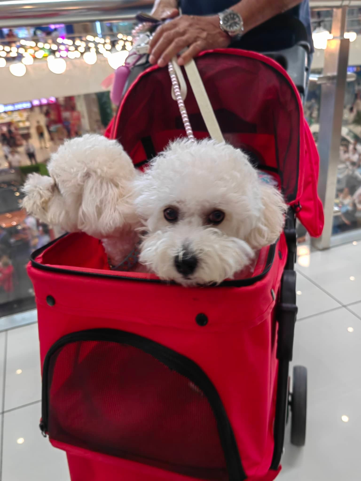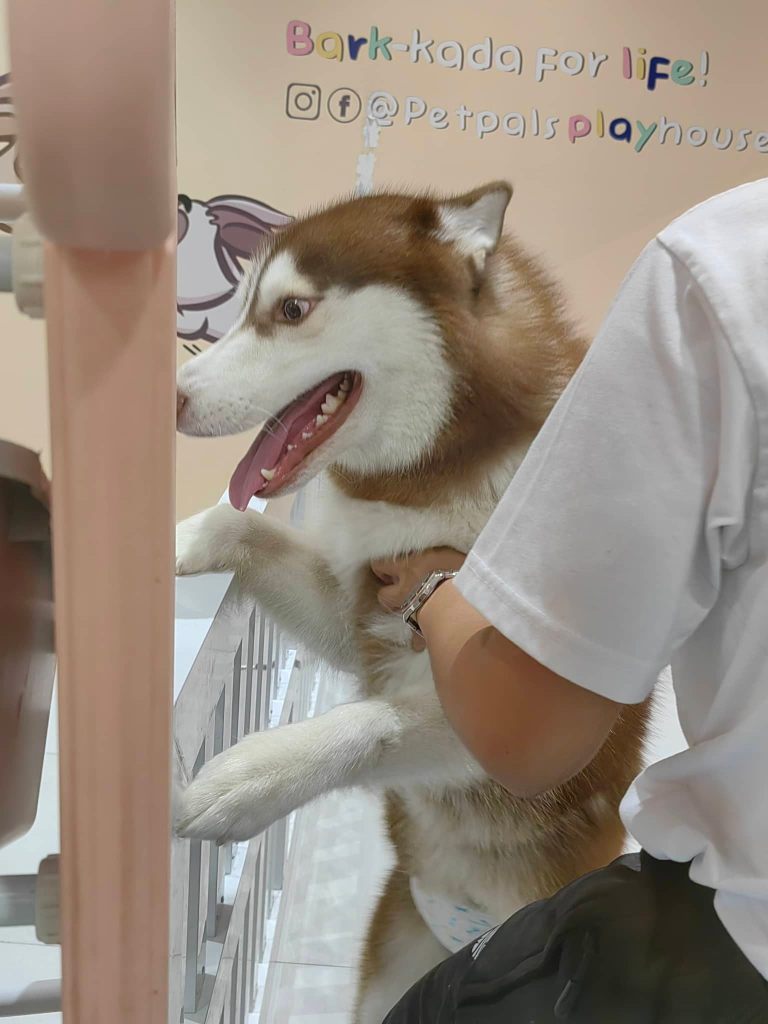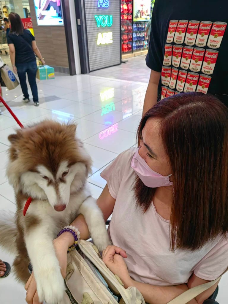 This super friendly Husky recognized me and clung quickly. The third time we saw him at the mall. The owner would happily oblige because Potchi (or something like that) is very nice and gentle.