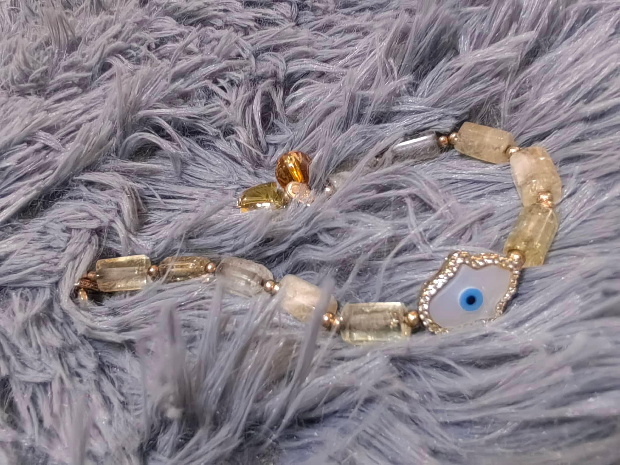 The last, but definitely not the least crystal I got from the shop is this citrine bracelet with evil eye.