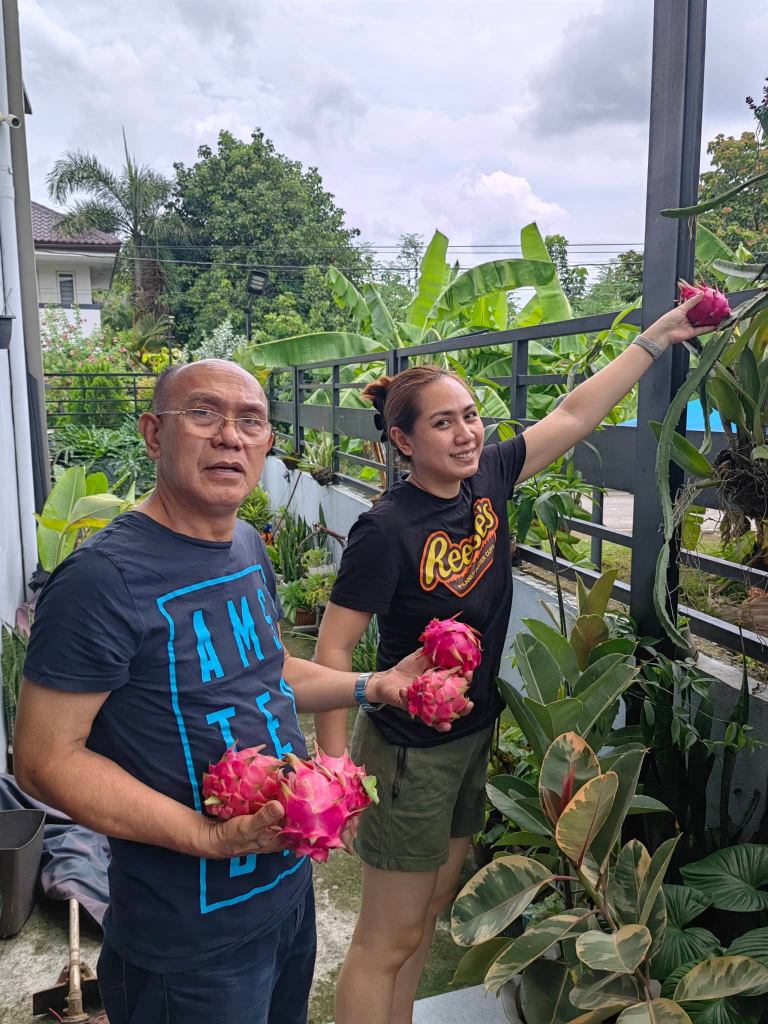 Since then, I have accepted the fact that I’m no plantita. But my Tatay is a different breed. Every plant, or tree that he cares for flourish and blossom into something that we all can enjoy. He has many vegetables like okra, eggplant, calamansi, sili, malunggay, and kamoteng kahoy. He also has herbs like oregano, lemon grass. Fr fruits, he has papaya, catimon mangoes, rambutan, and pineapple in his humble garden. But would you believe he has dragon fruit in his garden?