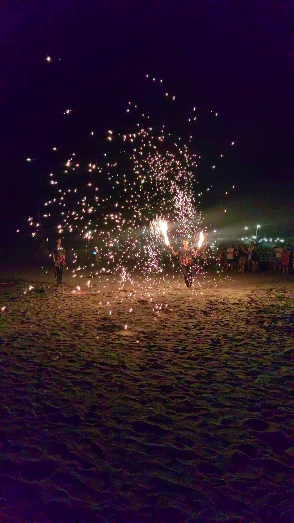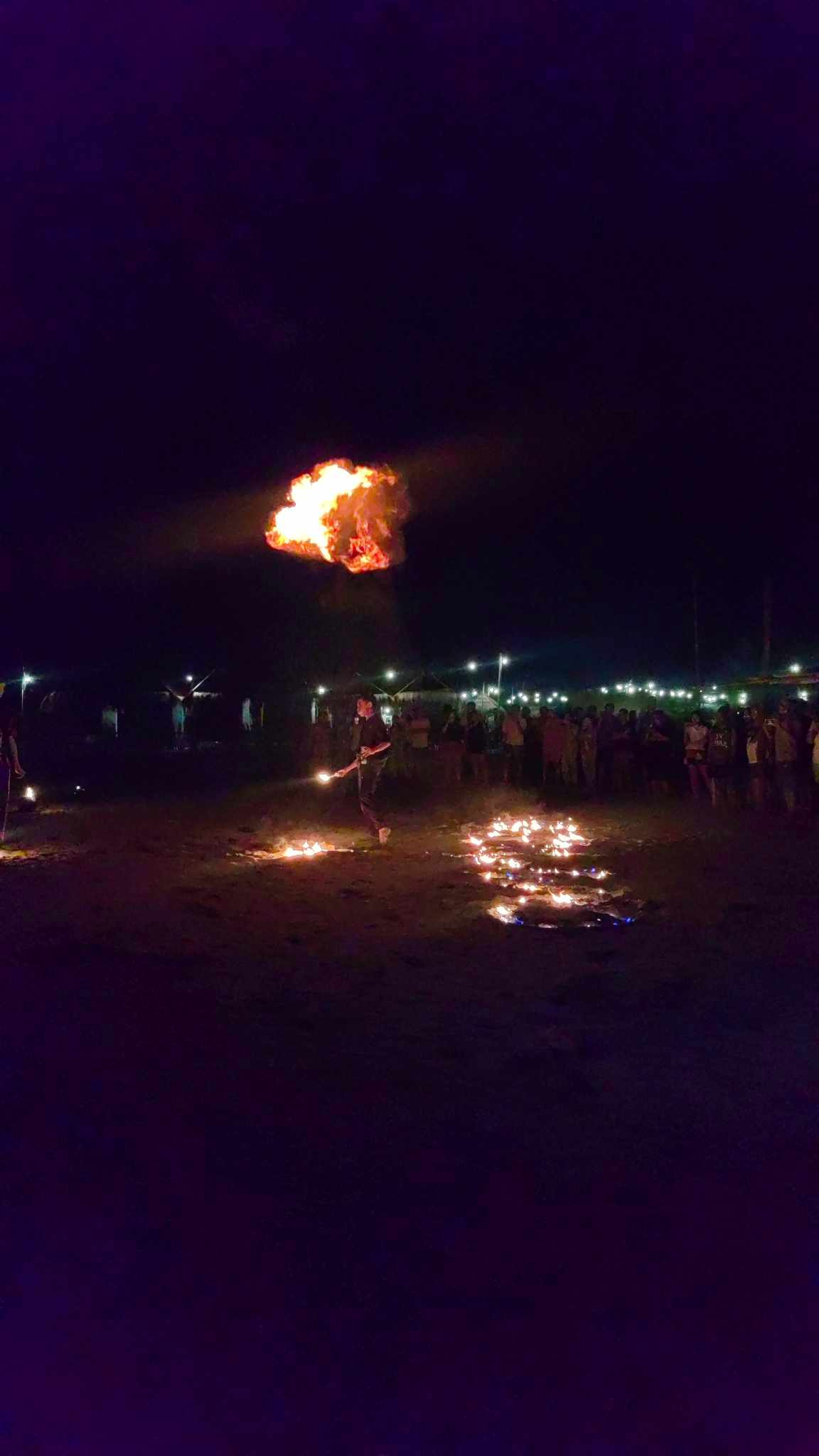 Between sets of the band, there’s a fire dance spectacle which you could enjoy by the beach.