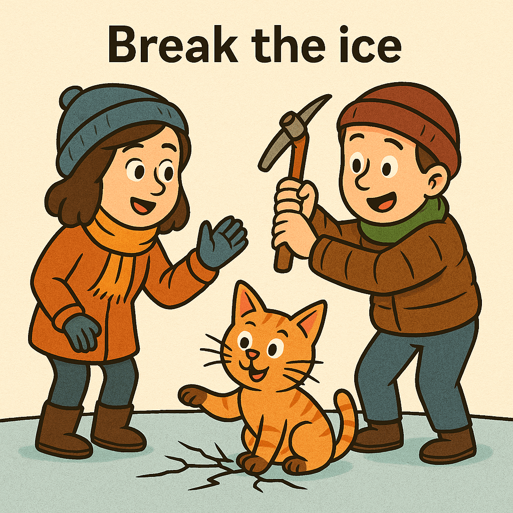 This idiom isn’t about cold weather or actual ice. Think of it as breaking that invisible wall of awkwardness when people don’t know each other yet.