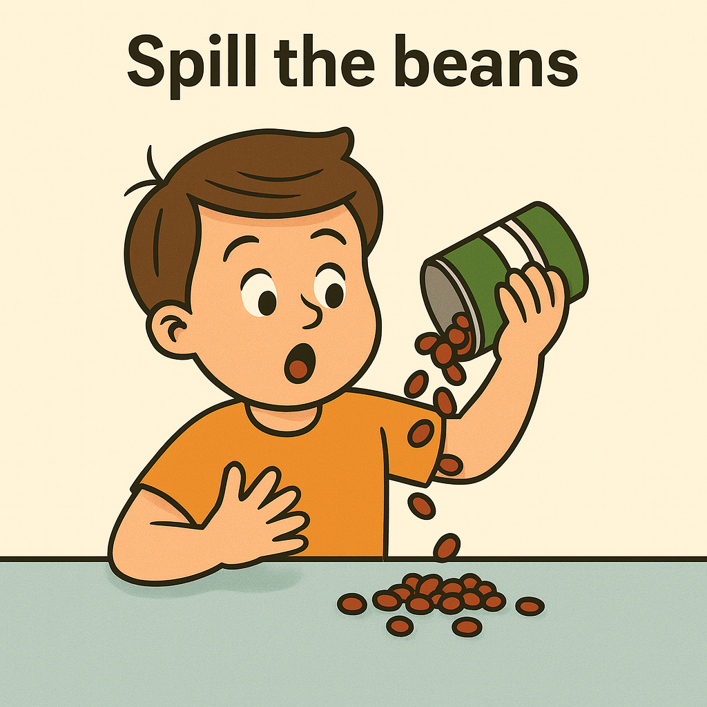 No actual beans involved—just picture someone tipping over a can of beans and everything coming out. That’s kind of what it feels like when a secret slips out unexpectedly.