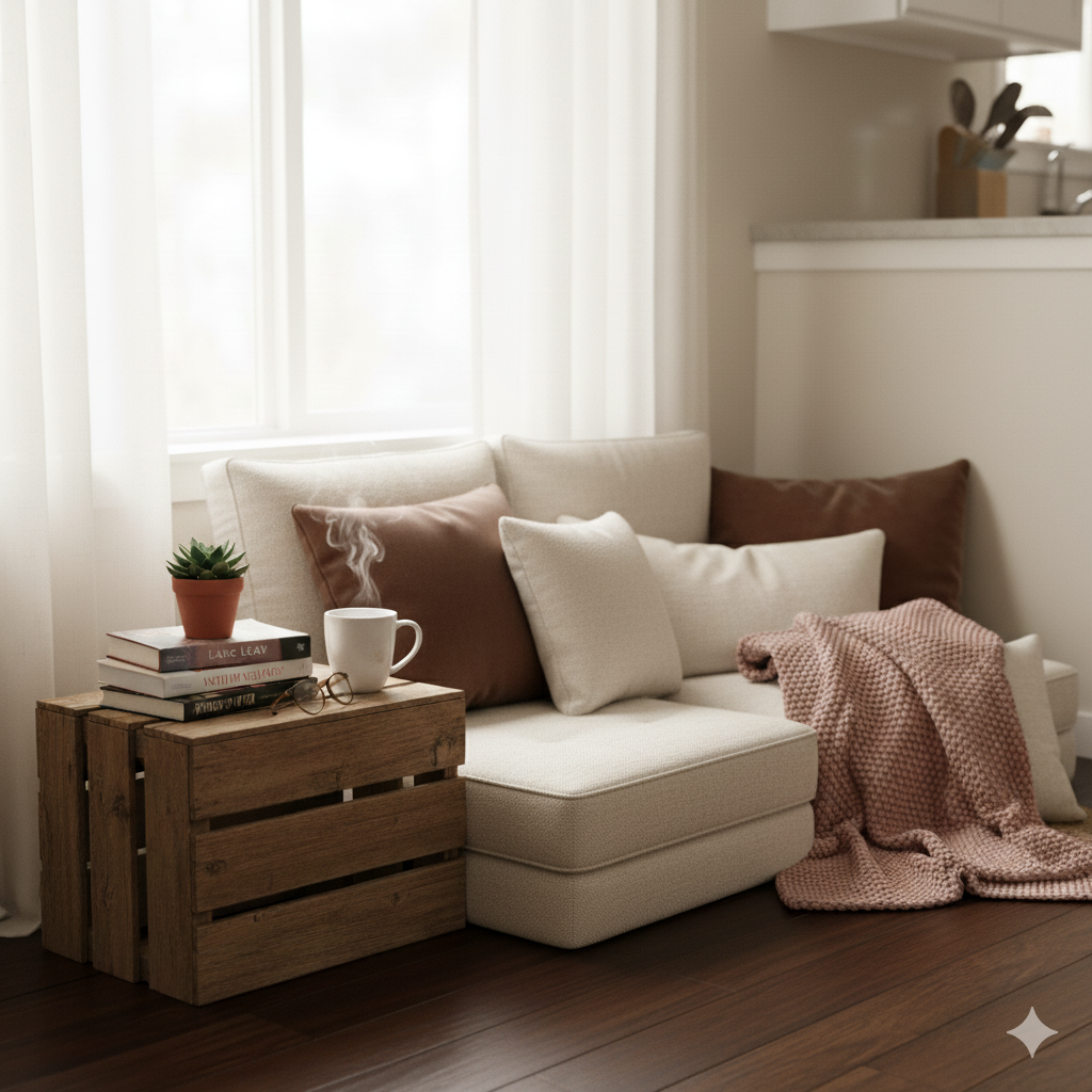 If you’re working with what you already have at home, try moving things around before buying anything new. Sometimes shifting a chair closer to the window or borrowing a side table from another room can change the whole vibe. Comfort isn’t about perfection—it’s about creating a space that quietly says, “Stay a little longer.”
